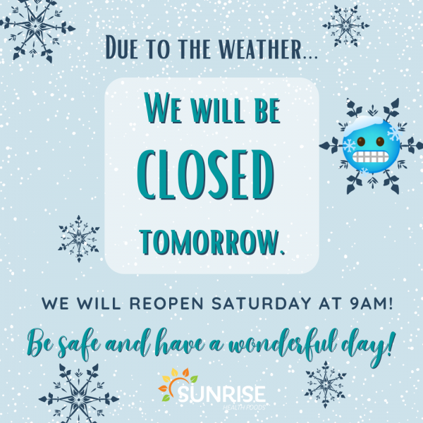 We are closed tomorrow, January 23rd due to the frigid weather conditions.