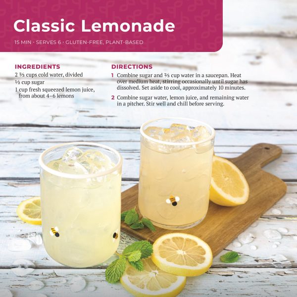 Nothing is as refreshing than a cold cup of lemonade on a hot summer day. You might have your own idea of the perfect lemonade recipe, but give this simple one a try. Don’t stop there, this classic can be your canvas for endless flavor adventures. Elevate your lemonade with exciting twists like lime, ginger, fruit purees, or even herbs like mint, rosemary and thyme. Dive in and start making your perfect summer drink today!