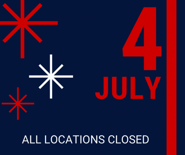 Happy Labor Day! All locations are closed today. Enjoy your day!